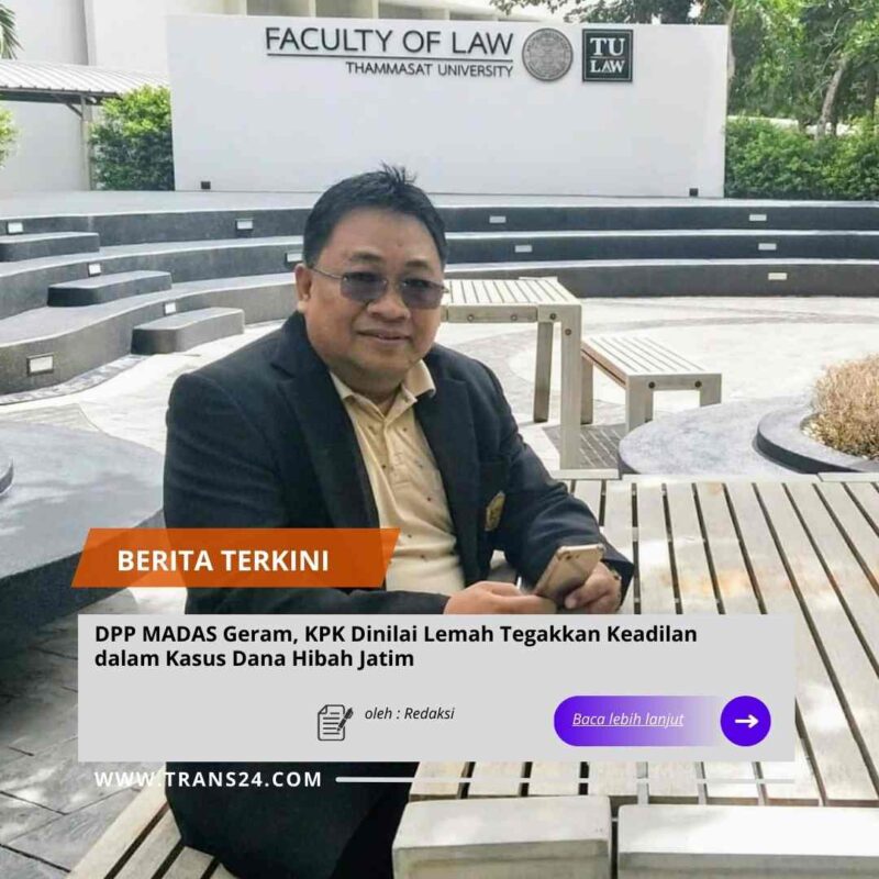 Jakarta//trans24.id – Dewan Pimpinan Pusat Madura Asli Daerah Anak Serumpun (DPP MADAS) menyatakan keprihatinan dan kegeraman terhadap proses penanganan Kasus Dana Hibah Provinsi Jawa Timur yang sedang ditangani Komisi Pemberantasan Korupsi (KPK). Dari total 21 orang yang ditetapkan sebagai tersangka oleh KPK dalam kasus dugaan suap pengurusan dana hibah Pokmas APBD Jawa Timur 2019–2022, hanya 4 orang yang ditahan, sedangkan 17 lainnya hingga kini masih berkeliaran di luar penahanan.