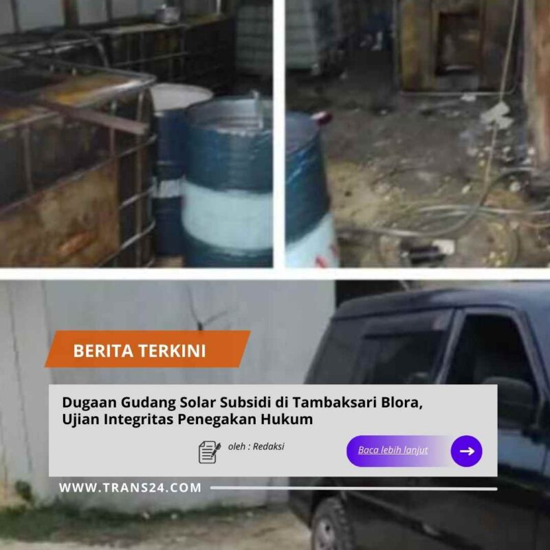 Blora jawa tengah//trans24.id – 22/12//2025. Dugaan keberadaan gudang penampungan solar bersubsidi ilegal di Desa Tambaksari, Kecamatan Blora, Kabupaten Blora, kembali menjadi sorotan publik.