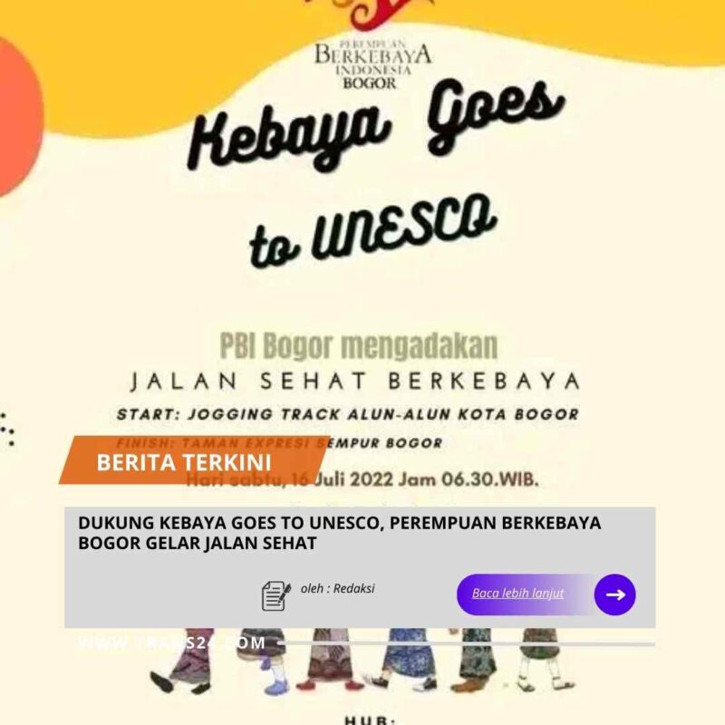 KOTA BOGOR//trans24.id – Dalam upaya melestarikan warisan budaya takbenda bangsa, komunitas Perempuan Berkebaya Indonesia (PBI) Cabang Bogor siap menggelar aksi simpatik bertajuk “Jalan Sehat Berkebaya”. Kegiatan ini merupakan bentuk dukungan nyata terhadap gerakan Kebaya Goes to UNESCO.