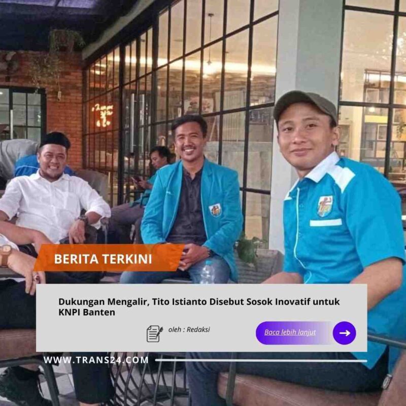 BANTEN, // trans24.id // – Dewan Pimpinan Daerah (DPD) Komite Nasional Pemuda Indonesia (KNPI) Kabupaten Pandeglang periode 2025–2028 menyatakan kesiapan penuh untuk mengawal dan mendukung pencalonan Tito Istianto, S.E., M.S. sebagai Ketua Dewan Pimpinan Daerah (DPD) I KNPI Provinsi Banten. Dukungan tersebut sekaligus menjadi bentuk komitmen KNPI Pandeglang dalam menyukseskan pelaksanaan Musyawarah Daerah (Musda) VIII DPD KNPI Provinsi Banten.
