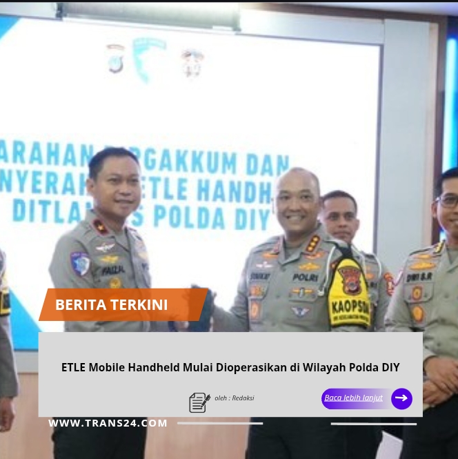 Jakarta, // trans24.id //- Korps Lalu Lintas (Korlantas) Polri terus memperkuat penegakan hukum lalu lintas berbasis teknologi dengan mulai mengoperasionalkan Electronic Traffic Law Enforcement (ETLE) Mobile Handheld di wilayah hukum Polda Daerah Istimewa Yogyakarta (DIY). Kebijakan ini merupakan arahan Kakorlantas Polri Irjen Agus Suryo Nugroho dalam rangka mewujudkan penegakan hukum lalu lintas yang modern, objektif, dan berkeadilan.