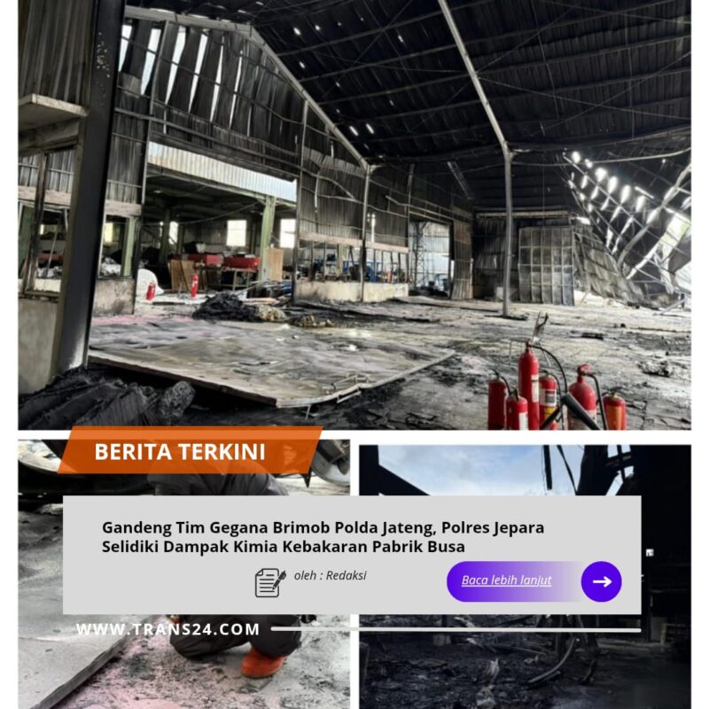 Jepara, // trans24.id //- Polres Jepara | PT. Chengqi Industrial Indonesia, pabrik yang memproduksi bahan busa di Desa Pringtulis, Kecamatan Nalumsari, Kabupaten Jepara terbakar pada Sabtu, (17/1/2027) sekitar pukul 10.30 WIB.