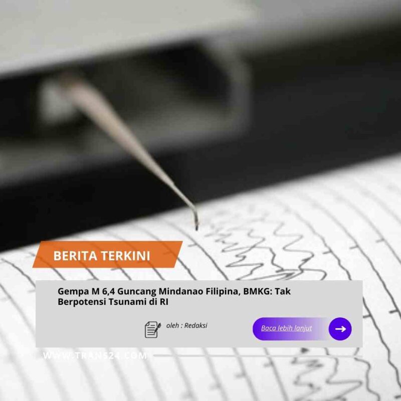 Jakarta //trans24.idGempa bumi berkekuatan magnitudo (M) 6,4 mengguncang Mindanao, Filipina. Gempa itu tidak menimbulkan potensi tsunami di wilayah Indonesia.