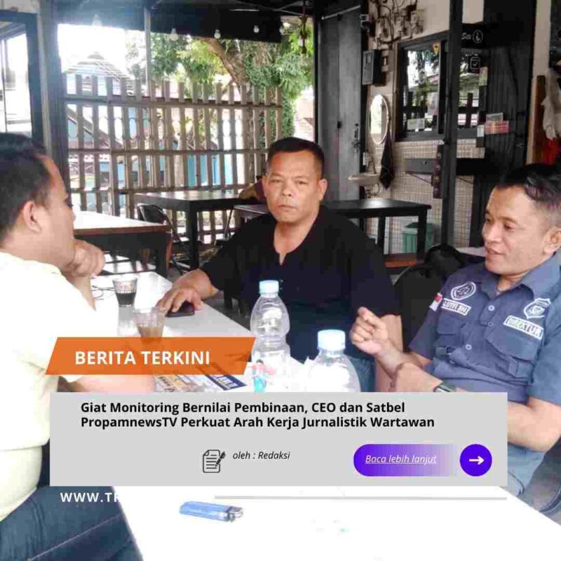 Garut//trans24.id – Selasa30/12/2025 CEO PT Media Propam PropamnewsTV, M. Lufti, SH, bersama Satbel (Satuan Bela Wartawan) Media PropamnewsTV terus melaksanakan giat monitoring sebagai bagian dari pembinaan berkelanjutan terhadap jajaran wartawan di daerah. Monitoring ini dilakukan bukan sekadar pengawasan, melainkan sebagai sarana memberikan arahan agar setiap aktivitas jurnalistik berjalan terarah, profesional, dan berpedoman pada etika pers serta tugas dan fungsi wartawan.