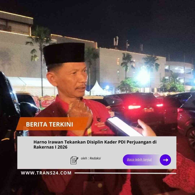 “Seperti pesan Ketua Umum Ibu Megawati Soekarnoputri, kita harus menanamkan kedisiplinan. Harapannya, ke depan bangsa dan negara menjadi lebih baik. Ini yang harus kita ubah, mindset kita,” ujar Harno usai menghadiri Rakernas dan HUT ke 53 PDI-P di Beach City International Stadium, Ancol, Jakarta, Minggu (11/1/2026)