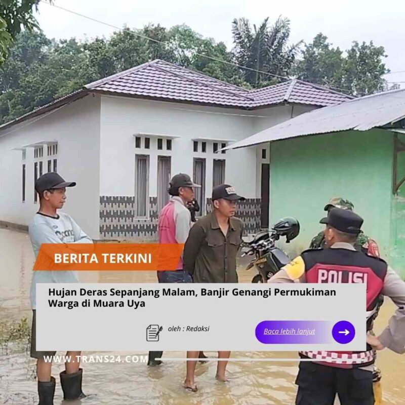 Tabalong//trans24.id – Hujan dengan intensitas tinggi yang terjadi sepanjang Jumat malam hingga Sabtu dini hari (27/12/2025) mengakibatkan banjir di sejumlah wilayah Kecamatan Muara Uya, Kabupaten Tabalong.