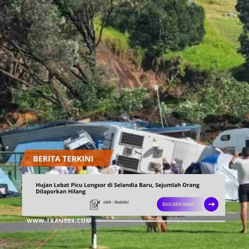 Wellington, // trans24.id //- Hujan lebat yang mengguyur Selandia Baru menyebabkan kerusakan luas dan memicu longsor di Pulau Utara pada Kamis, 22 Januari 2026. Sejumlah orang dilaporkan hilang setelah longsor terjadi di dekat sebuah lokasi perkemahan, sementara rumah-rumah dievakuasi, ribuan warga kehilangan aliran listrik, dan sejumlah ruas jalan utama ditutup.