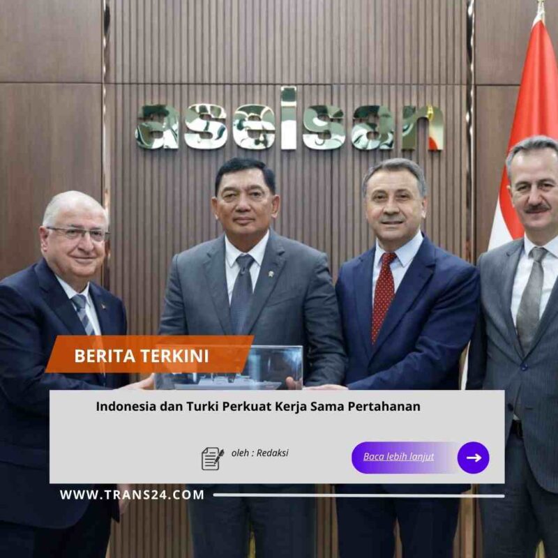 Jakarta//trans24.id – Menteri Pertahanan (Menhan) RI Sjafrie Sjamsoeddin menyampaikan bahwa Indonesia dan Turki sepakat meningkatkan kerja sama pertahanan di berbagai bidang dalam Dialog 2+2 Indonesia-Turki di Ankara, Jumat.