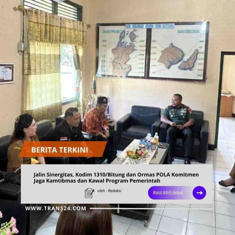 BITUNG, // trans24.id // – Komando Distrik Militer (Kodim) 1310/Bitung terus memperkuat sinergi dengan elemen masyarakat demi menjaga stabilitas keamanan di Kota Bitung. Hal ini ditegaskan dalam pertemuan silaturahmi antara jajaran Kodim 1310/Bitung dengan Organisasi Kemasyarakatan (Ormas) Persatuan Organisasi Lintas Agama, Adat, dan Budaya (POLA) pada Senin (19/1/2026).