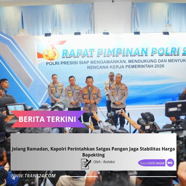 Jakarta, //trans24.id – Kapolri Jenderal Listyo Sigit Prabowo memberi atensi khusus terhadap stabilitas harga bahan pokok penting (bapokting) menjelang bulan suci Ramadan. Ia menginstruksikan Satuan Tugas (Satgas) Pangan Polri untuk segera melakukan langkah intervensi guna mencegah lonjakan harga yang berpotensi membebani masyarakat. instruksi ini disampaikan Kapolri di sela Rapat Pimpinan (Rapim) Polri 2026 di TMII, Jakarta Timur, Selasa (10/2/2026).