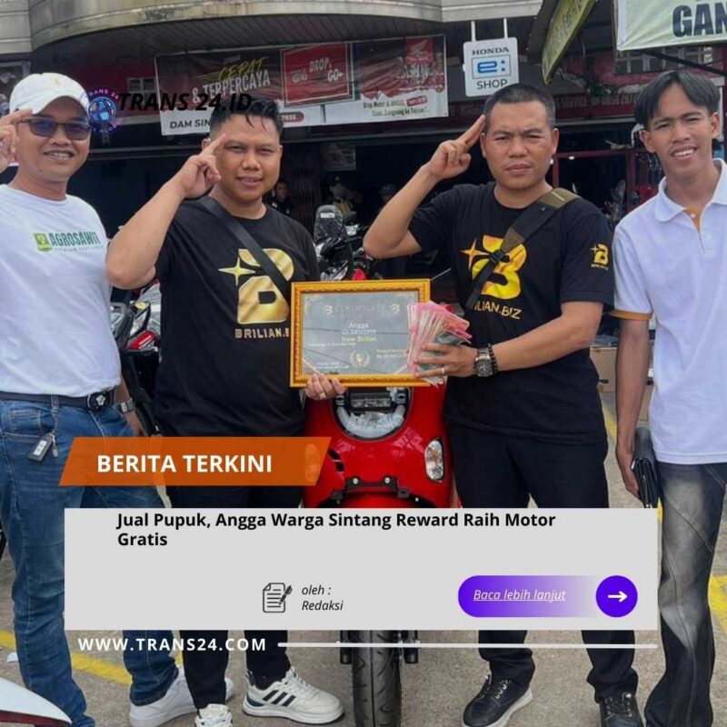 SINTANG//trans24.id – Angga (29) warga Kabupaten Sintang berhasil meraih bonus motor cash senilai 20 juta rupiah dari program brilian biz dibawah naungan Best Corporation. Bonus tersebut di peroleh dari hasil penjualan pupuk sawit agro.