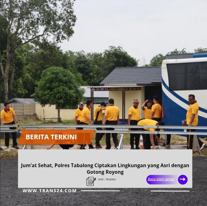Tabalong, // trans24.id //-Usai apel pagi, Polres Tabalong melaksanakan kegiatan gotong royong dalam rangka mewujudkan lingkungan yang bersih dan nyaman di lingkungan Polres Tabalong, Pembataan, Kelurahan Pembataan, Kecamatan Murung Pudak, Kabupaten Tabalong, Jum’at (06/02/2026) pagi.
