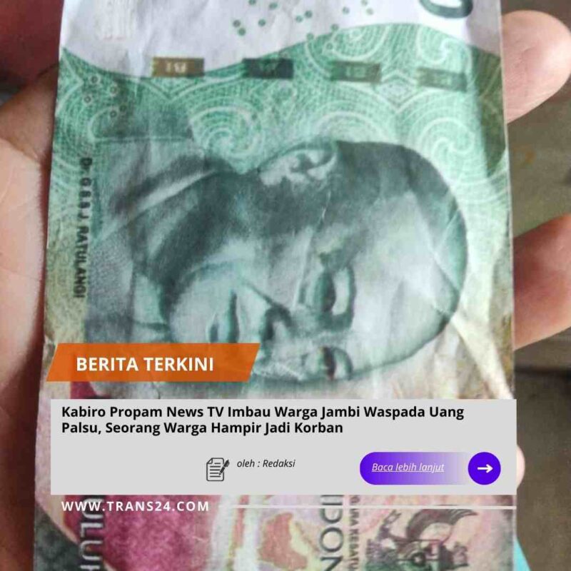 Jambi//trans24.id — Kabiro Propam News TV mengimbau masyarakat Kota Jambi untuk lebih berhati-hati terhadap peredaran uang palsu yang kini mulai meresahkan warga. Imbauan ini disampaikan setelah seorang warga bernama Maznah hampir menjadi korban penipuan uang palsu pada Selasa (23/12/2025).