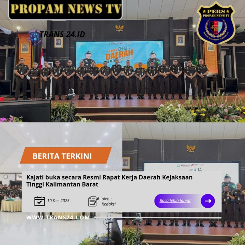 Pontianak//trans24.id – Kepala Kejaksaan Tinggi Kalimantan Barat Dr. Emilwan Ridwan secara resmi membuka Kegiatan Rapat Kerja Daerah (Rakerda) di Wilayah Hukum Kejaksaan Tinggi Kalimantan Barat bertempat di Aula Baharuddin Lopa Lantai 4 Kejaksaan Tinggi Kalbar, Kamis (11/12/2025).
