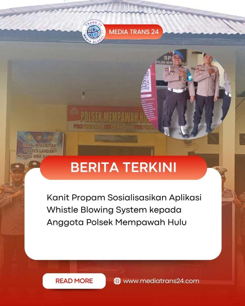 MEMPAWAH HULU, LANDAK//trans24.id – Dalam upaya meningkatkan transparansi, akuntabilitas serta pengawasan internal di lingkungan Polri, Kanit Propam Polsek Mempawah Hulu Aipda Rodiansyah melaksanakan kegiatan sosialisasi penggunaan Aplikasi Whistle Blowing System (WBS) kepada seluruh personel Polsek Mempawah Hulu. Jumat, ( 05/11/25 ).