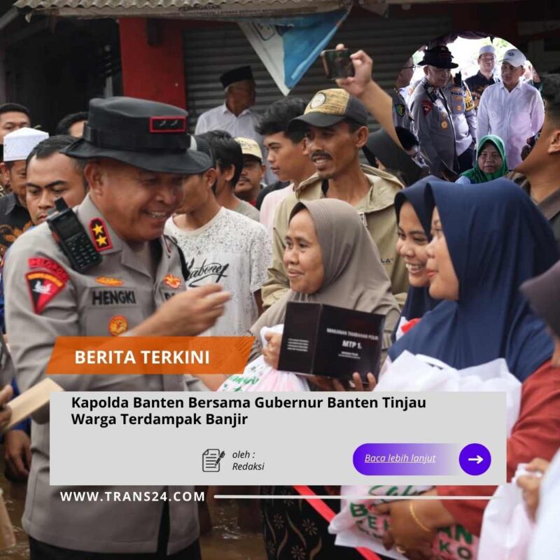 Serang//trans24.id  – Kapolda Banten Irjen Pol Hengki bersama Gubernur Banten Andra Soni meninjau langsung warga yang terdampak banjir di wilayah Padarincang, Kabupaten Serang, pada Jumat (19/12). Kunjungan ini dilakukan sebagai bentuk kepedulian dan respons cepat pemerintah daerah serta Kepolisian terhadap masyarakat yang terdampak bencana alam.