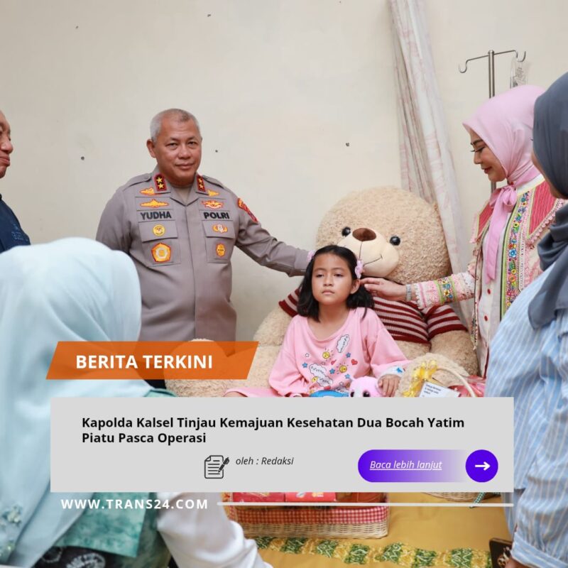 Kapolda Kalimantan Selatan, // trans24.id //-Irjen Pol Rosyanto Yudha Hermawan, S.I.K., S.H., M.H. didampingi Ketua Bhayangkari Daerah Kalsel Ny. Yennie Rosyanto Yudha hari ini meninjau langsung perkembangan kesehatan Felina Delfi (11) dan adiknya Jailani (5), di Rumkit Bhayangkara Banjarmasin, Kamis (22/1/2026). Kunjungan ini dilakukan pasca adik bungsu, Jailani, menjalani operasi pada kakinya beberapa waktu lalu.