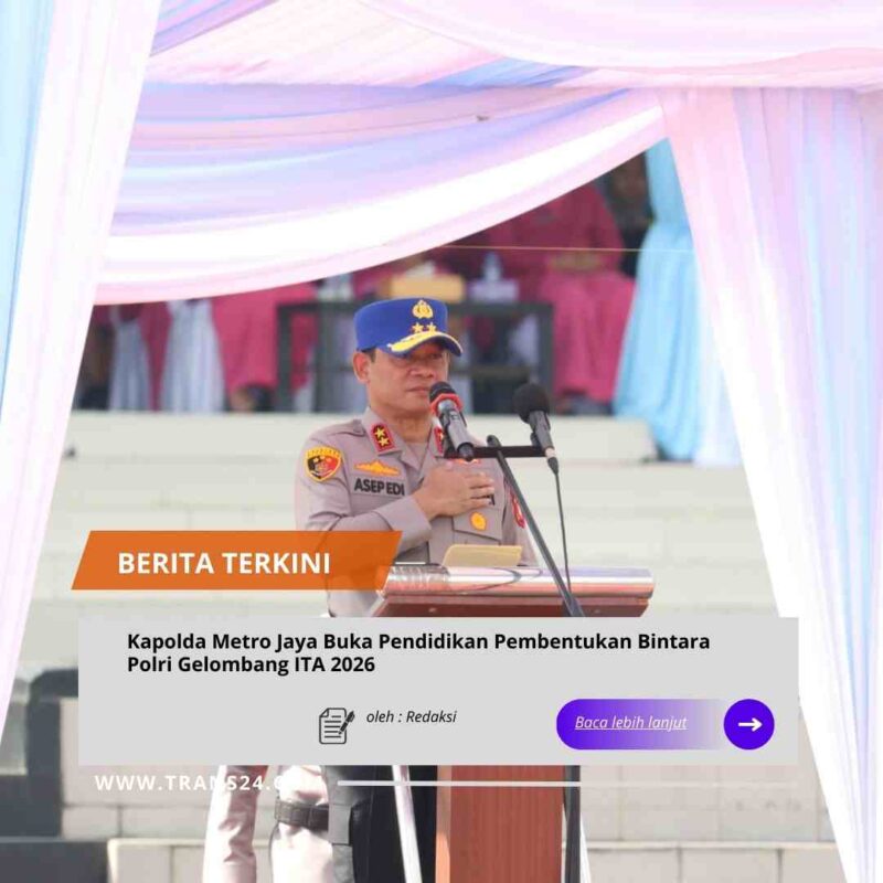 Jakarta//trans24.id  – Kapolda Metro Jaya Irjen Pol. Asep Edi Suheri membuka secara resmi Pendidikan Pembentukan Bintara Polri Gelombang I Tahun Anggaran 2026 yang digelar pada Selasa (6/1/2026). Pada kesempatan tersebut, Kapolda Metro Jaya sekaligus membacakan amanat Kalemdiklat Polri kepada seluruh peserta upacara.