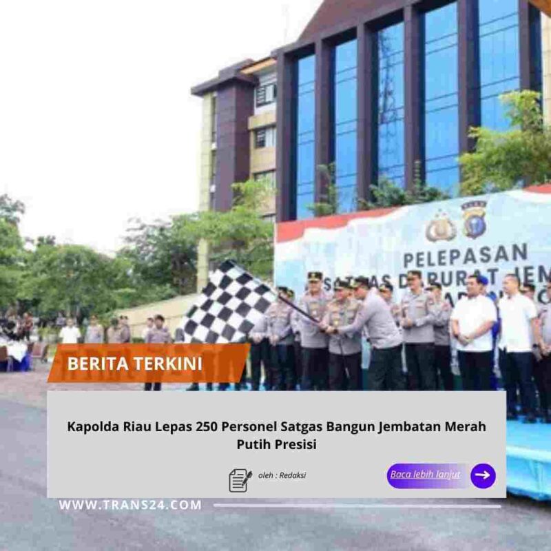 Pekanbaru, // trans24.id // – Sebanyak 250 personel gabungan Polda Riau dan polres jajaran diturunkan ke lapangan untuk mengeksekusi pembangunan 26 jembatan di Bumi Lancang Kuning. Personel Satgas Jembatan Merah Putih Presisi ini dilepas langsung oleh Kapolda Riau Irjen Pol Herry Heryawan.