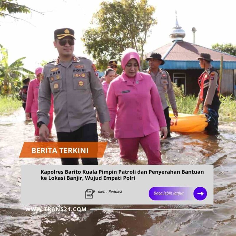 Barito Kuala//trans24.id Kapolres Barito Kuala, AKBP Anib Bastian, S.I.K., M.H., memimpin langsung kegiatan patroli dan pengecekan ke lokasi banjir di wilayah Kabupaten Batola, Jumat pagi, 9 Januari 2026. Fokus kunjungan berada di dua desa yang terkena dampak, yakni Desa Bahandang dan Desa Sampurna, Kecamatan Jejangkit.