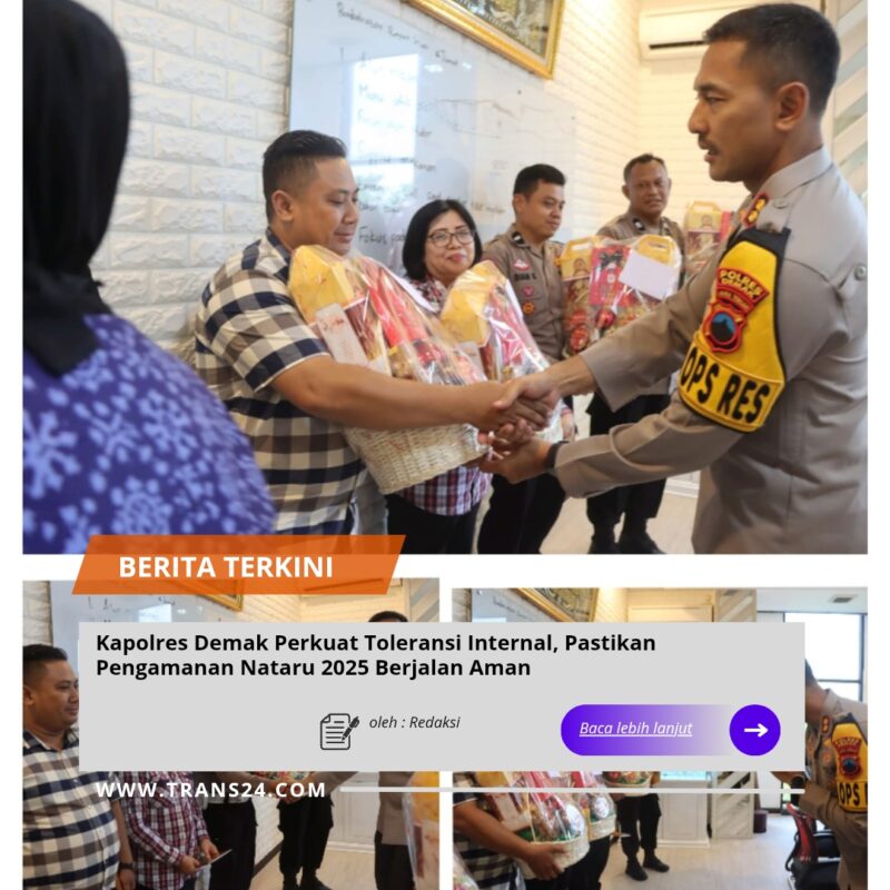 Demak//trans24.id – Kapolres Demak AKBP Ari Cahya Nugraha berbagi kebahagiaan dengan anggota Polres Demak yang beragama Kristen sebagai wujud perhatian pimpinan sekaligus komitmen Polri dalam menjaga toleransi dan kebersamaan di lingkungan Kepolisian.