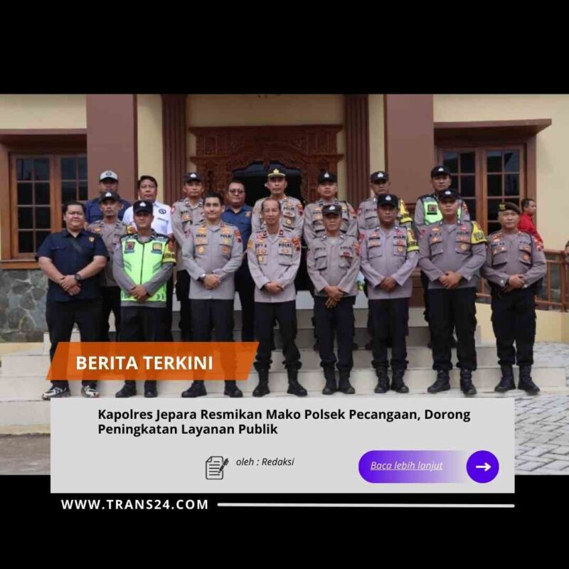 Jepara //trans24.id Polres Jepara | Kepala Kepolisian Resor (Kapolres) Jepara AKBP Erick Budi Santoso meresmikan Gedung Baru Polsek Pecangaan yang berlokasi di Jalan Raya Pecangaan-Batealit Nomor 21, Pulodarat, Kecamatan Pecangaan, Kabupaten Jepara, pada Jumat (9/1/2026).