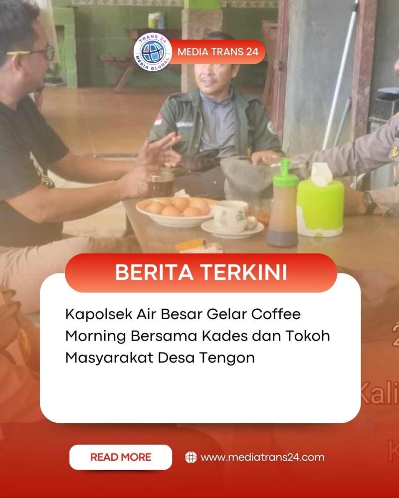 AIR BESAR, LANDAK//trans24.id – Suasana hangat dan penuh kekeluargaan tampak begitu jelas dalam kegiatan Kopi Morning yang digelar bersama Kepala Desa Tengon Agustinus S.Pd, para tokoh masyarakat, serta Kapolsek Air Besar IPTU Mohammad Ibrahim Malik, S.H., yang turut didampingi anggotanya pada Selasa (2/12/2025).