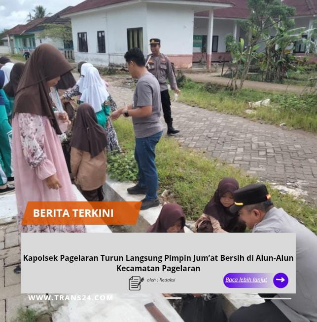 Pandeglang, // trans24.id //- Sebagai bentuk dukungan terhadap program Jum’at Bersih, jajaran Muspika Kecamatan Pagelaran melaksanakan kegiatan gotong royong kebersihan di Alun-Alun Kecamatan Pagelaran, Kabupaten Pandeglang, Provinsi Banten, pada Jumat pagi, Jumat (6/2/2026).