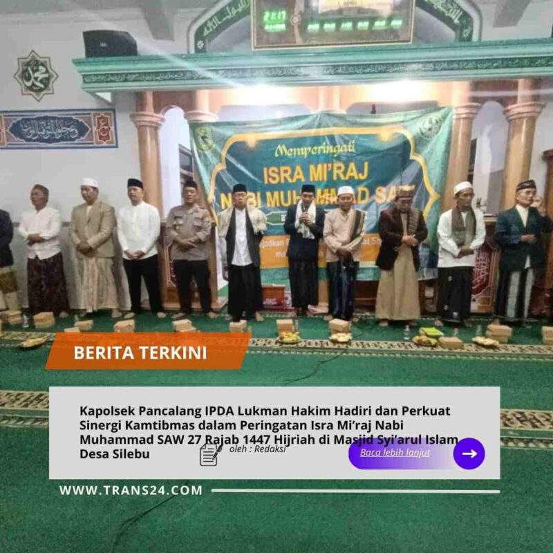 Kuningan, Senin (19/01/2026), // trans24.id //– Kapolsek Pancalang IPDA Lukman Hakim menghadiri kegiatan Peringatan Isra Mi’raj Nabi Muhammad SAW 27 Rajab 1447 Hijriah yang dilaksanakan pada Kamis malam (15/01/2026) pukul 20.00 WIB hingga 23.00 WIB di Masjid Syi’arul Islam Desa Silebu, Kecamatan Pancalang, Kabupaten Kuningan.