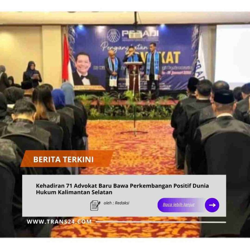 “Jumlah advokat di Kalimantan Selatan terus bertambah. Ini menjadi tantangan, baik bagi organisasi maupun bagi individu yang bersangkutan agar tetap bisa eksis dan bersaing secara profesional,” ujar Fauzan, usai pelantikan dan pengambilan sumpah 71 Advokat baru Perhimpunan Advokat Indonesia (Peradi) Kalsel, Selasa (20/1/2026).