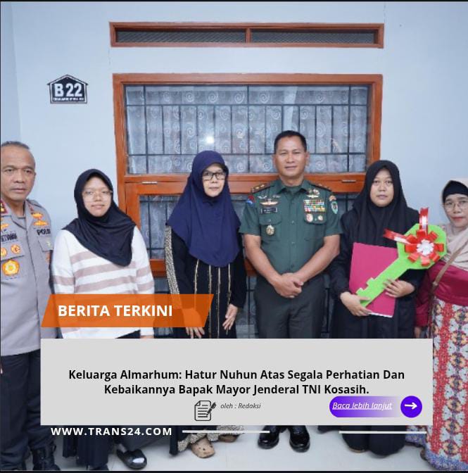 Bandung, // trans24.id //-Hujan rintik-rintik di Kota Bandung dan sekitarnya, Panglima Kodam III/Siliwangi, Mayor Jenderal TNI Kosasih, di dampinggi Kapoksahli Kodam III/Siliwangi, Brigjen TNI Robertson Ismail, S I.P., M.M., M.Si., dan rombongan menuju tempat penyerahan 2 (dua) unit rumah kepada keluarga almarhum Ipda Anumerta Hendra Kurniawan dan Aiptu Anumerta Muhammad Jerry Sonconery, di Gg. Bpk. H. Yoyo, Kp. Cihanjuang, Parompong Kab. Bandung Barat, Kamis (29/01/2026).