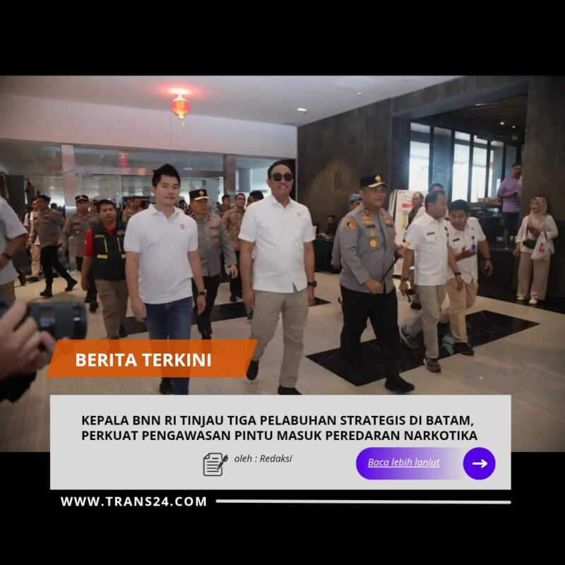 Kepala BNN RI, // trans24.id //-Suyudi Ario Seto, melakukan peninjauan langsung di tiga pelabuhan strategis yang ada di Kota Batam, Kepulauan Riau, yakni Pelabuhan Nongsa Pura, Pelabuhan Internasional Batam Center, dan Pelabuhan Harbour Bay, Sabtu (17/1). Kegiatan ini dilakukan dalam rangka memperkuat pengawasan dan kewaspadaan terhadap potensi peredaran gelap narkotika lintas negara melalui jalur laut.