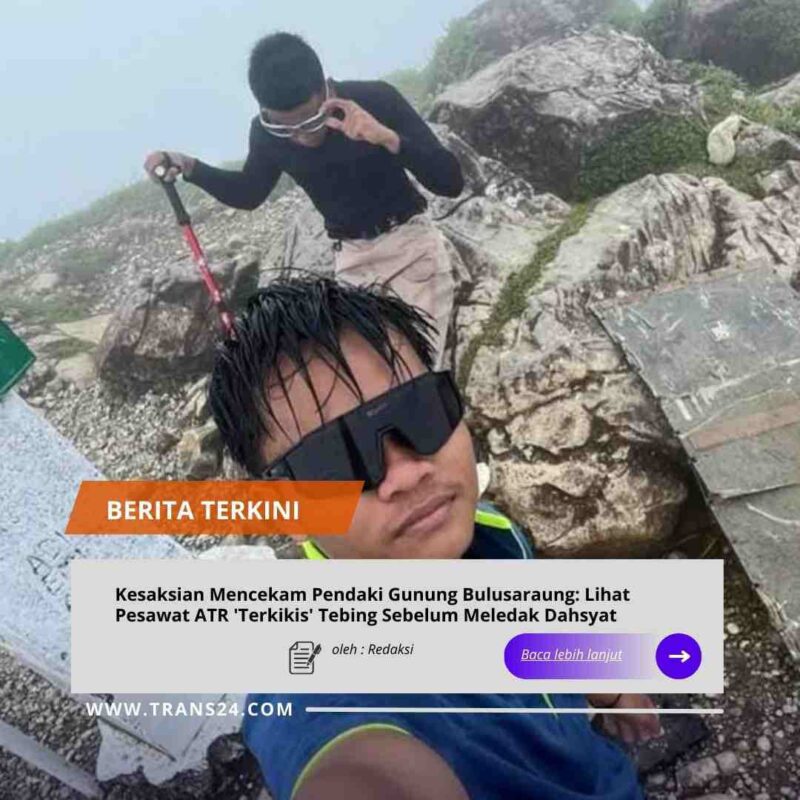 Sulawesi Selatan, // trans24.id //-Minggu 18 Januari 2026Keheningan puncak Gunung Bulusaraung, Kabupaten Pangkep, Sulawesi Selatan, mendadak berubah menjadi kepanikan dan dentuman dahsyat. Dua pendaki muda, Reski (20) dan Muslimin (18), menjadi saksi mata langsung detik-detik kecelakaan pesawat ATR bernomor registrasi PK-THT yang dilaporkan hilang kontak, Sabtu (17/1/2026) siang.
