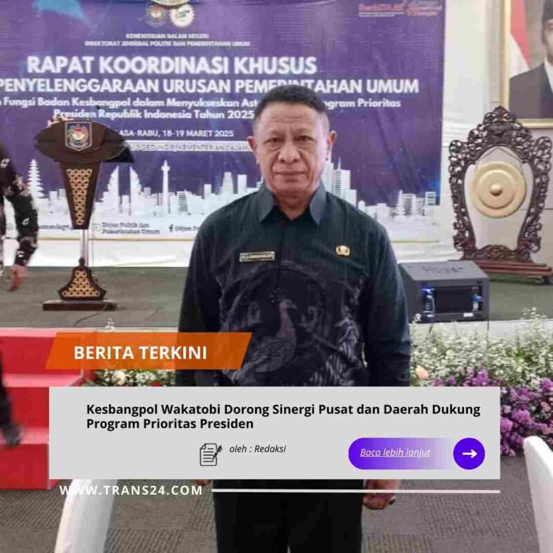 Jakarta,//trans24.id// — Kepala Badan Kesatuan Bangsa dan Politik (Kesbangpol) Kabupaten Wakatobi, Adam Bahtiar, menghadiri Rapat Koordinasi Nasional (Rakornas) bertema “Sinergi Pelaksanaan Program dan Kegiatan Urusan Pemerintahan Umum di Daerah Guna Mendukung Pelaksanaan Program Prioritas Presiden dan Asta Cita” yang digelar di Ballroom Hotel Pullman Central Park, Jakarta, Jumat (16/1/2026).