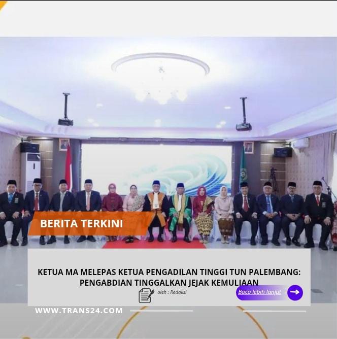 Palembang, // trans24.id // – Humas: Ketua Mahkamah Agung Republik Indonesia, Prof. Dr. Sunarto, S.H., M.H. memimpin wisuda purnabakti Ketua Pengadilan Tinggi Tata Usaha Negara (PTTUN) Palembang, A. Syaifullah, S.H., yang digelar di Kantor PTTUN Palembang pada Rabu (28/1).