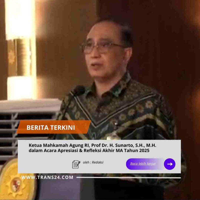 Jakarta//trans24.id – Rangkaian kegiatan Apresiasi dan Refleksi Akhir Tahun Mahkamah Agung 2025 diakhiri dengan sesi tanya jawab dengan rekan-rekan jurnalis, salah satu pertanyaan yang terlontar berkaitan dengan arah kebijakan Mahkamah Agung dalam memanfaatkan perkembangan teknologi Artificial Intelligence (AI) ke depannya tanpa mengurangi independensi dan nurani Hakim dalam memutus perkara.