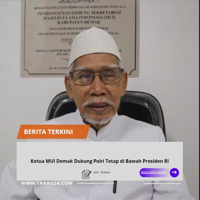 Demak, // trans24.id– Ketua Umum Majelis Ulama Indonesia (MUI) Kabupaten Demak, Drs. KH. Ahmad Ghozali, menyatakan dukungan penuh agar institusi Kepolisian Negara Republik Indonesia (POLRI) tetap berada langsung di bawah Presiden Republik Indonesia. Menurutnya posisi Polri di bawah presiden telah memberikan manfaat nyata bagi bangsa dan negara.