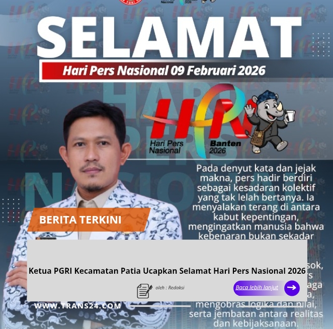 Pandeglang Banten, // trans24.id // — Ketua Persatuan Guru Republik Indonesia (PGRI) Kecamatan Patia, Kabupaten Pandeglang, Provinsi Banten, Taufik Ahmad, S.Pd.SD, menyampaikan ucapan Selamat Hari Pers Nasional (HPN) yang diperingati pada 9 Februari 2026.
