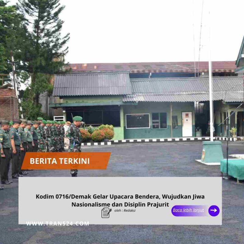 DEMAK, // trans24.id //– Kodim 0716/Demak menggelar Upacara Pengibaran Bendera mingguan yang dilaksanakan di lapangan upacara Makodim 0716/Demak, Jl. Kyai Singkil No. 1, Kabupaten Demak pada Senin, ( 26/01/2026 ).