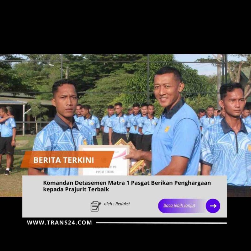 JAKARTA //trans24.id alam rangka meningkatkan semangat pengabdian, dedikasi, dan profesionalisme prajurit, Komandan Detasemen Matra 1 Pasgat memberikan penghargaan kepada prajurit dan tim terbaik. Kegiatan tersebut dilaksanakan di Lapangan Apel Markas Detasemen Matra 1 Pasgat. Jumat, (9/1/2026).