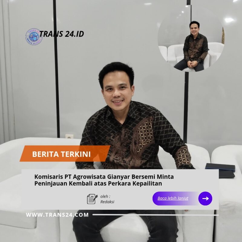Jakarta//trans24.id – Komisaris PT Agrowisata Gianyar Bersemi, Johannes Frederikus Khe Goan, meminta dilakukan peninjauan kembali (PK) terkait pengajuan Penundaan Kewajiban Pembayaran Utang (PKPU) yang berujung pada permohonan kepailitan perusahaan PT Bali Karya Sejati yang dikelola oleh IK Astawa sebagai Kontraktor Manajemen perusahaan.