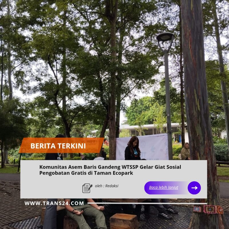 JAKARTA//trans24.id – Komunitas Asem Baris berkolaborasi dengan Wadah Tempa Spiritual Sukma Pyrous (WTSSP) yang dipimpin oleh Sukma Pyrous menggelar kegiatan sosial pengobatan gratis yang berlangsung di Taman Ecopark, Jakarta (10/1/2026).