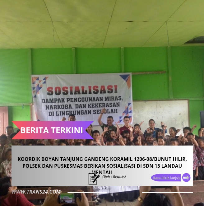 BOYAN TANJUNG, // trans24.id – Kepala Koordinator Pendidikan Kecamatan Boyan Tanjung, Ibu Utin Hidayani, S.Pd. gandeng Koramil 1206-08/Bunut Hilir, Polsek dan Puskesmas Boyan Tanjung untuk memberikan Sosialisasi tentang Dampak Penggunaan Miras, Narkoba dan Kekerasan di Lingkungan Sekolah.