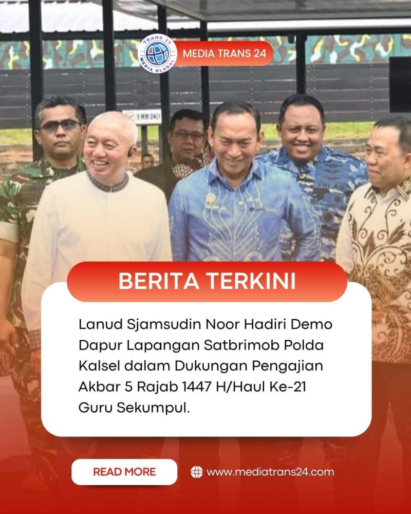BANJARBARU//trans24.id – Komandan Lanud Sjamsudin Noor, Kolonel Pnb Suparjo, S.T., M.M., M.Han., diwakili Kadispers Lanud Sjamsudin Noor, Letkol Adm Maulana Harry Anggoro, CHRMP., menghadiri kegiatan Demo Dapur Lapangan Satbrimob Polda Kalimantan Selatan, bertempat di Lapangan Tembak Satbrimobda Kalsel, Kota Banjarbaru. Jum’at, (05/12/2025).