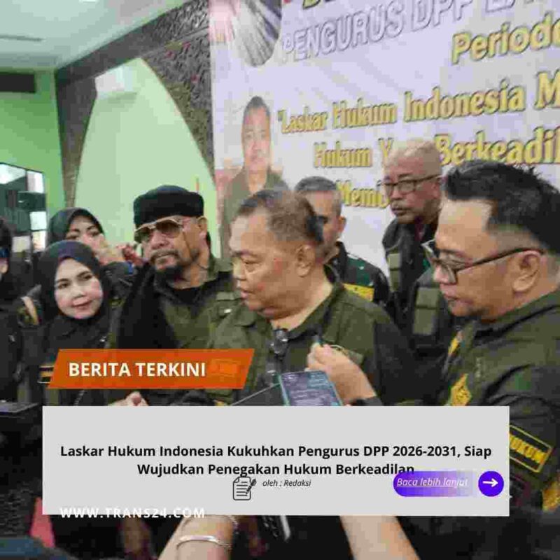 Jakarta, // trans24.id //- 24 Januari 2026  Laskar Hukum Indonesia mengadakan Deklarasi dan Pengukuhan Pengurus Dewan Pimpinan Pusat (DPP) periode 2026-2031 di Jakarta. Acara ini dihadiri oleh Walikota Jakarta Utara dan tokoh-tokoh lainnya.