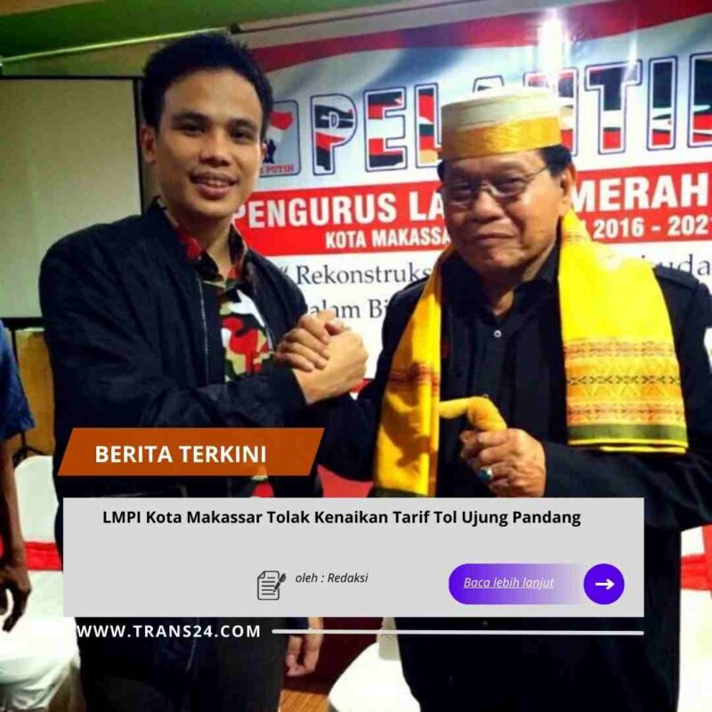 Makassar//trans24.id – Laskar Merah Putih Indonesia (LMPI) Markas Cabang Kota Makassar secara tegas menolak kebijakan kenaikan tarif Tol Ujung Pandang Seksi 1, 2, dan 3 yang mulai diberlakukan pada 5 Januari 2026 pukul 00.00 WITA. Penyesuaian tarif tersebut berlaku di lima gerbang tol, yakni Gerbang Cambaya, Kaluku Bodoa, Tallo Barat, Tallo Timur, dan Parangloe.
