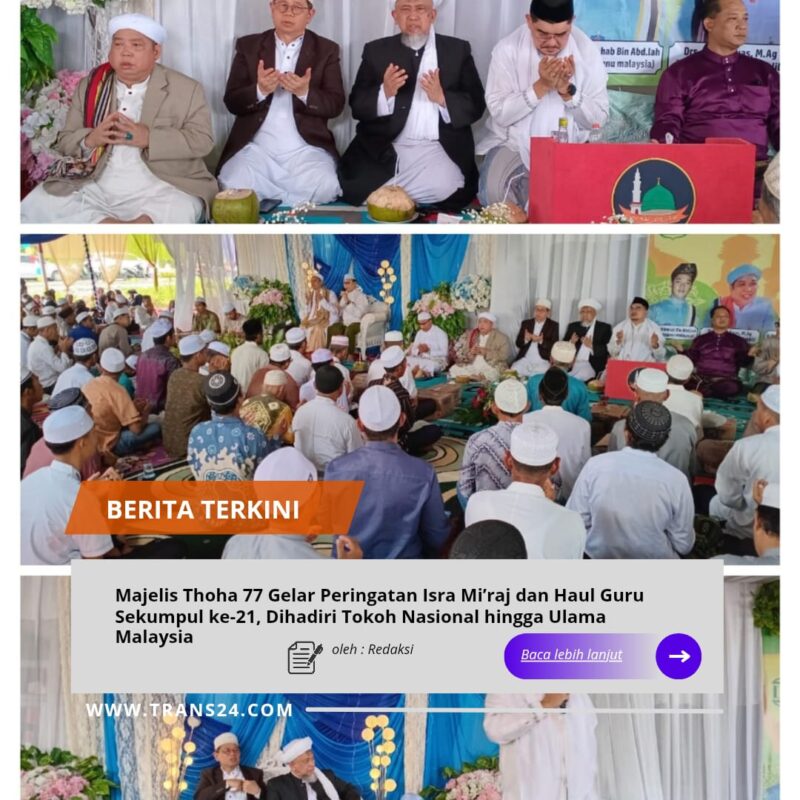 Marabahan, // trans24.id //-Barito Kuala – Ahad, 18 Januari 2026, Majelis Ilmu dan Dzikir Thoha 77 menggelar Peringatan Isra Mi’raj Nabi Muhammad SAW 1447 Hijriah yang dirangkaikan dengan Haul Guru Sekumpul ke-21, Ahad (18/1/2026), bertempat di Jalan Ray 5, Desa Panca Karya RT 05, Kecamatan Alalak, Kabupaten Barito Kuala, Kalimantan Selatan.