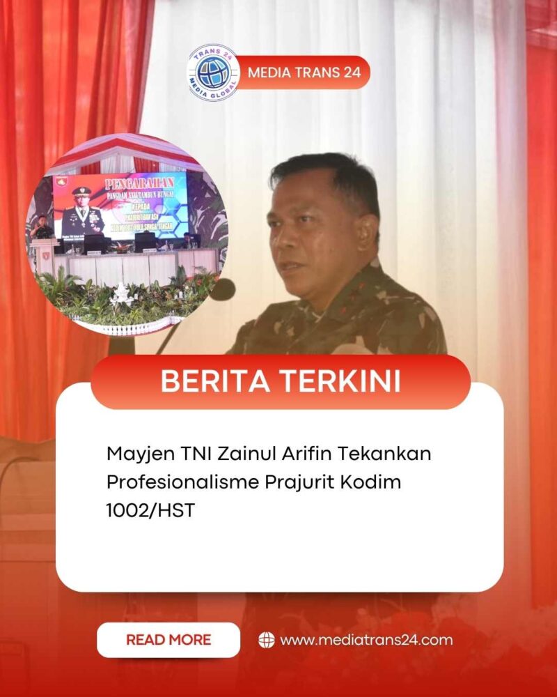 BARABAI//trans24.id – Panglima Daerah Militer (Pangdam) XXII/Tambun Bungai, Mayjen TNI Zainul Arifin, melaksanakan kunjungan kerja ke Kodim 1002/Hulu Sungai Tengah (HST) sekaligus memberikan pengarahan kepada prajurit dan aparatur sipil negara (ASN), Jumat (5/12/2025).
