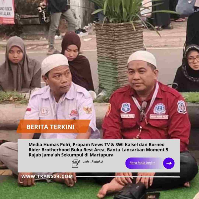 Martapura//trans24.id Minggu (28/12/2025) — Pada acara rutin Moment 5 Rajab 1447 H atau Haul Abah Guru Sekumpul yang diadakan di Martapura Kalsel, terwujud sinergi antara Panitia Pelaksana, masyarakat relawan, lembaga penegak hukum dan organisasi masyarakat. Media Humas Polri, Propam News TV, serta Dewan Pimpinan Wilayah (DPW) Sekretariat Bersama Wartawan Indonesia (SWI) Kalimantan Selatan dan BRB bekerja sama membuka rest area sebagai titik pendukung pelayanan dan informasi bagi jamaah yang datang.