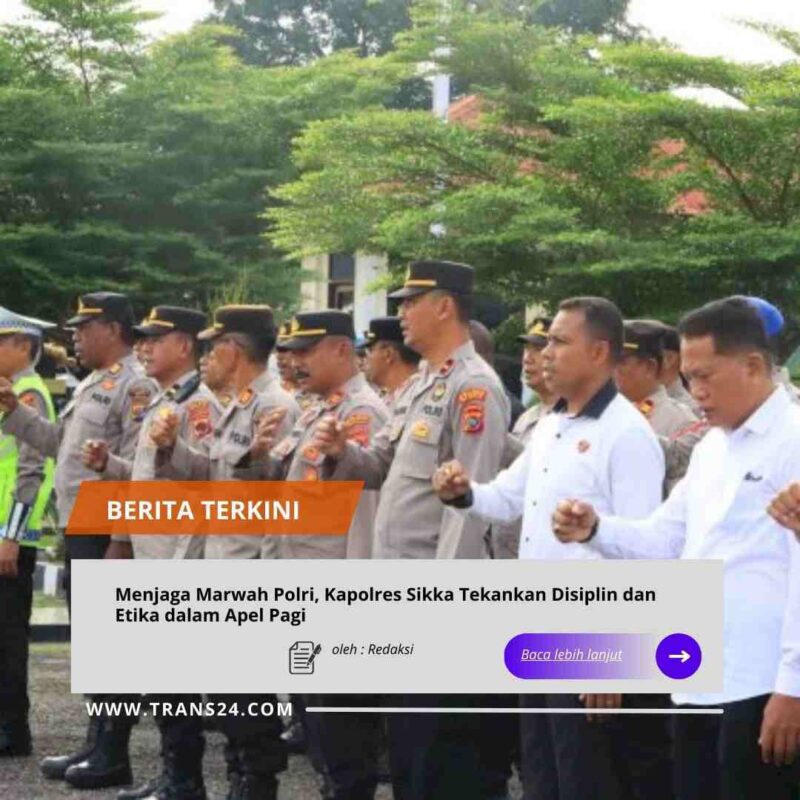 Maumere, // trans24.id //- 19 Januari 2026 – Kapolres Sikka AKBP Bambang Supeno, S.I.K. kembali menegaskan komitmennya dalam membangun institusi Polri yang profesional, beretika, dan berintegritas melalui Apel Pagi Seluruh Personel Polres Sikka dan Polsek Jajaran yang digelar pada Senin (19/1/2026) pagi di Lapangan Apel Polres Sikka, Jalan Jenderal Ahmad Yani, Kota Maumere.